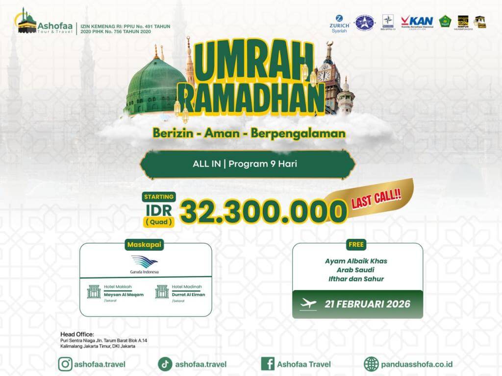 - Jika jamaah tidak bekenan berangkat pada jadwal yang telah ditentukan maka Travel mengembalikan biaya umroh kepada jamaah diluar biaya pendaftaran dan pengurusan dokumen serta perlengkapan yang telah dikeluarkan.